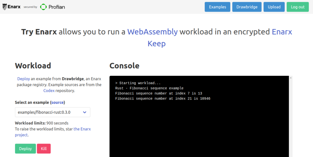 In a previous article, Confidential Computing: try it now, for free, we introduced our self-service demo site, try.enarx.dev. You can find out more about what the service offers and why we think it’s so exciting in the original article. However, we also promised to add more capabilities to the service, and to add an update when we had. The initial release of the site allowed you to upload WebAssembly applications and run them within an Enarx Keep (a Trusted Execution Environment, the basic primitive for Confidential Computing). There wasn’t much help provided, and you needed to upload it each time you wanted to run it, which is fine for basic experimentation, but we wanted to provide a better user experience; which is what we did.