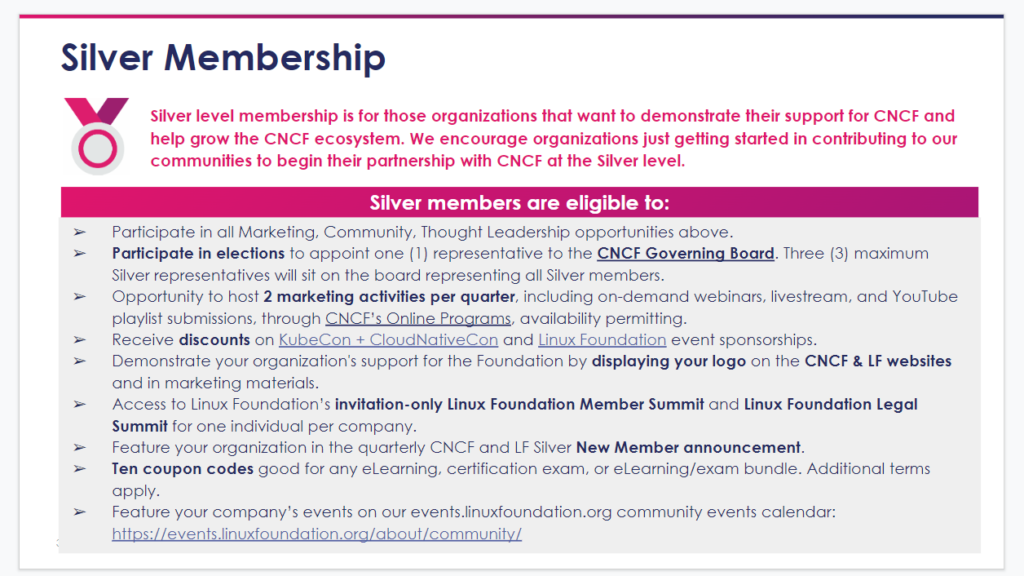 The CNCF is a giant in the tech and computing community, and we’re honored to be a member. At the Silver level, we have the opportunity to participate and be supported in a variety of ways.
